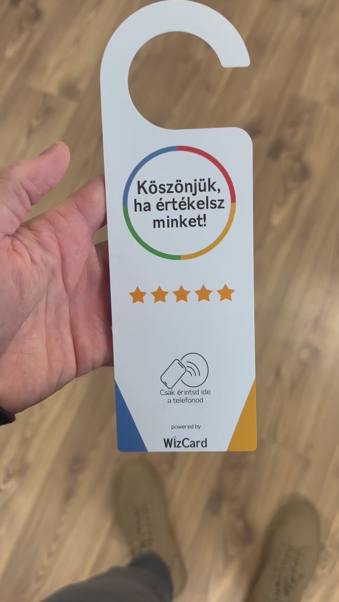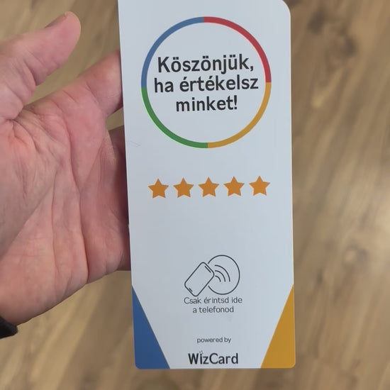 Mint tudjuk az online hírneved nagyban függ az értékelésektől, de a WizCard az új kulcs a sikeres visszajelzésekhez. Szólítsd meg ügyfeleidet az okos táblánkkal és nézd, ahogy egyszerűen és pillanatok alatt megosztják tapasztalataikat a Google-on. Búcsúzz el a bonyolult és idegesítő keresésektől és a nehézkes értékelési folyamatoktól!